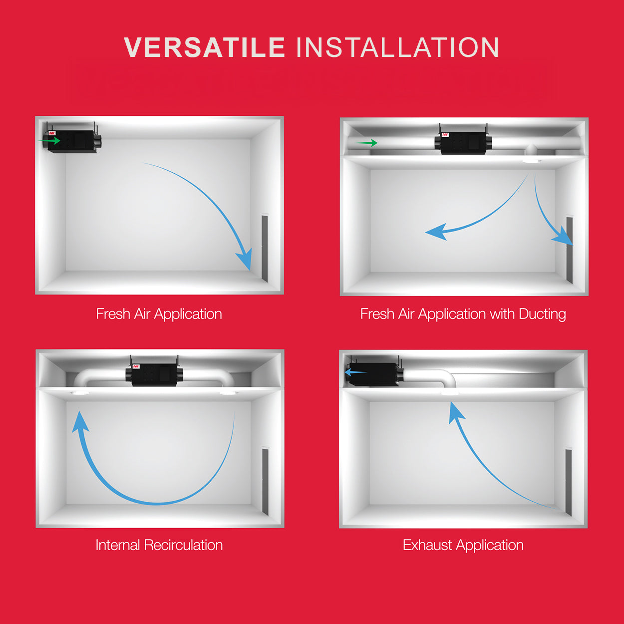 · Versatile Installation: Compact and lightweight design allows both ceiling‑concealed and standalone installation; comes with built‑in hanging brackets and a side‑mounted terminal box for easy setup.